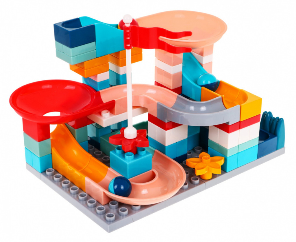 Klocki konstrukcyjne to zabawka znana i lubiana zarówno przez dzieci jak i dorosłych. Nasz zestaw klocków przeznaczony jest dla dzieci od trzeciego roku życia. Klocki w bardzo łatwy sposób łączą się ze sobą, można z nich stworzyć wspaniałe konstrukcje ze zjeżdżalniami. Zestaw składa się z 101 elementów konstrukcyjnych oraz 4 piłeczek.