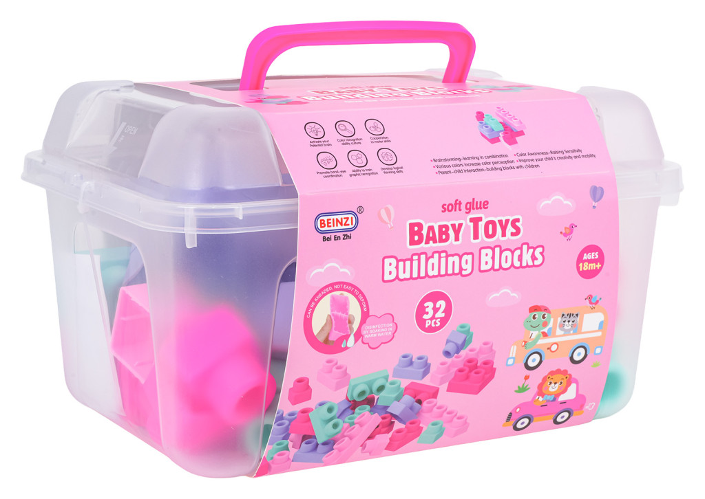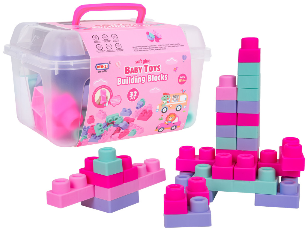 Zestaw Miękkich Klocków 32el. Różowe + Walizka