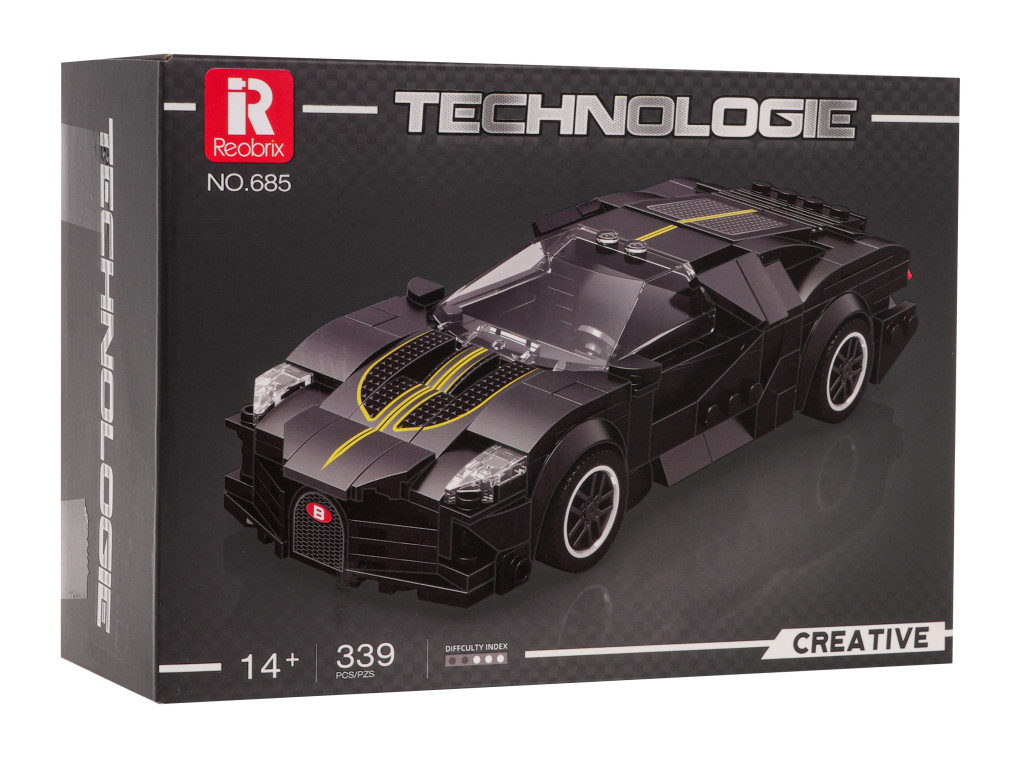 Zestaw 339 klocków konstrukcyjnych do samodzielnej budowy sportowego samochodu. Zabawka przeznaczona dla dzieci od 14-go roku życia, a poziom jej trudności to 2/5. W zestawie dołączono instrukcję obrazkową. Układanie klocków konstrukcyjnych rozwija u dzieci zdolności manualne, wyobraźnię przestrzenną i cierpliwość.