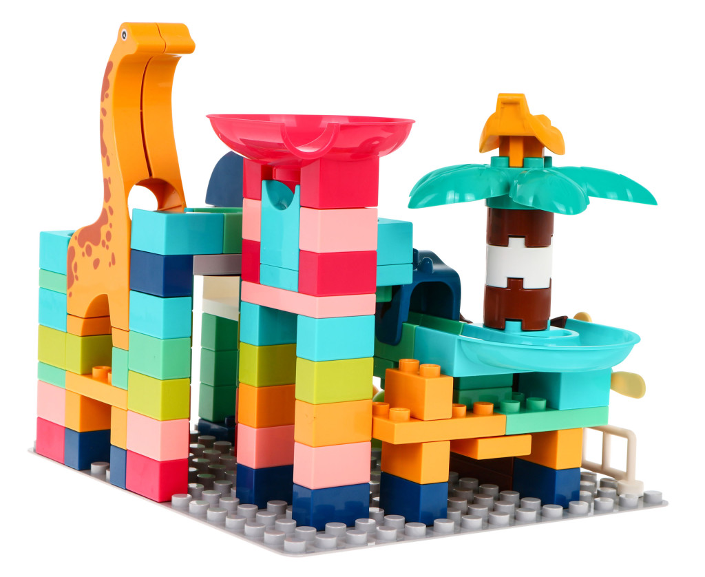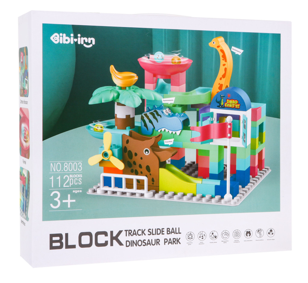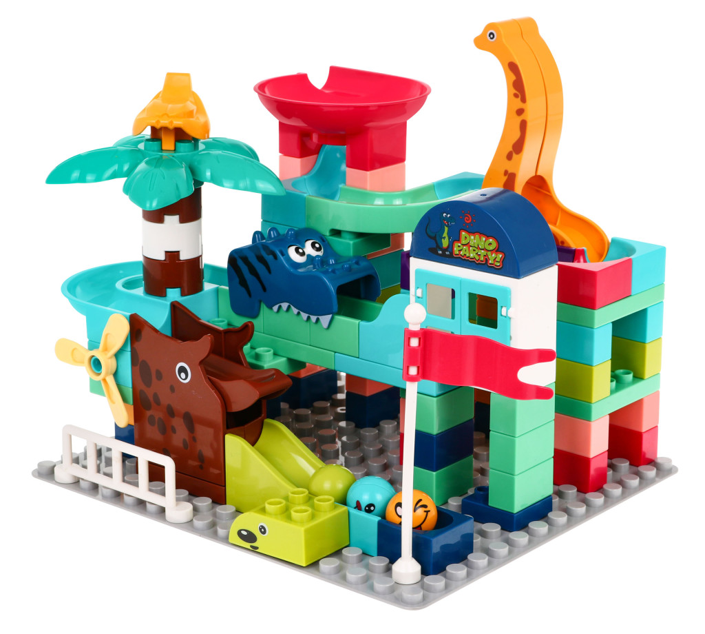 Zestaw klocków konstrukcyjnych dla dzieci 112 el. Tor dla kulek Zjeżdżalnie + Dinozaury