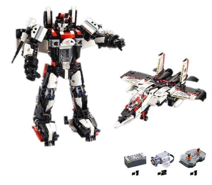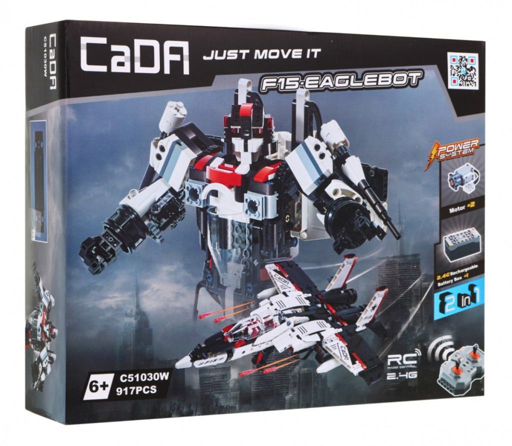 Po złożeniu myśliwca lub robota można go wyposażyć w baterie i z łatwością nim sterować za pomocą pilota dołączonego do zestawu.