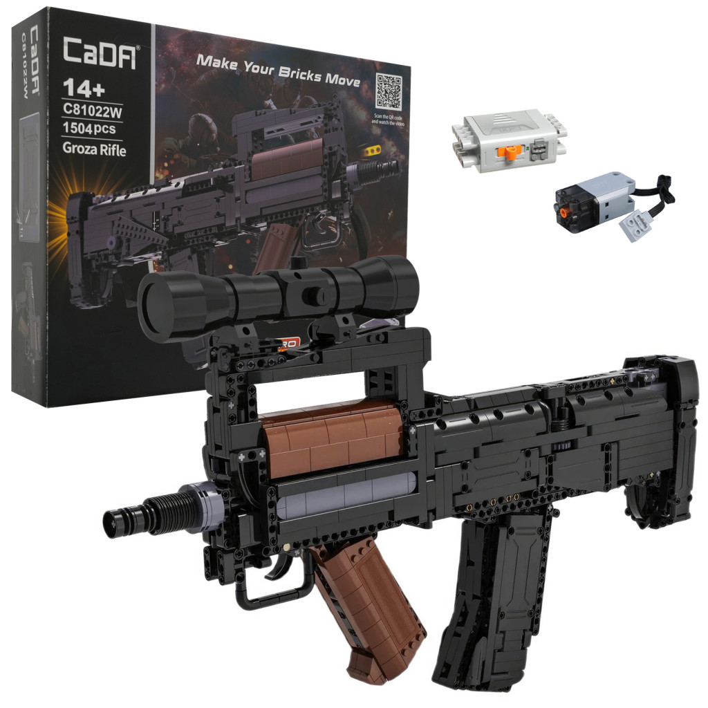 Klocki konstrukcyjne 1504 el. Karabin Groza Rifle dla dzieci 14+ Funkcja Strzelania + Silnik L-motor Pro