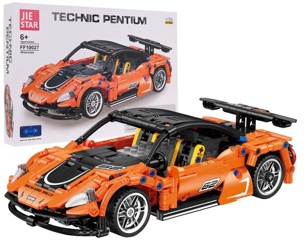 Zestaw 491 klocków konstrukcyjnych do samodzielnej budowy pomarańczowego samochodu sportowego z funkcją zdalnego sterowania. Zabawka przeznaczona dla dzieci od 6-go roku życia. Klocki i elementy autka wykonane zostały z wysokiej jakości tworzywa sztucznego. Auto posiada ruchome elementy, jak otwierane drzwi i maskę. Samochód steruje się zdalnie za pomocą pilota RC z zestawu lub dedykowanej aplikacji mobilnej. Pilot działa na niezawodnej częstotliwości 2,4 GHz. W zestawie dołączono instrukcję obrazkową. Układanie klocków konstrukcyjnych rozwija u dzieci zdolności manualne, wyobraźnię przestrzenną i cierpliwość. Autko zasilane jest akumulatorem 7,4V (w zestawie), pilot jest zasilany bateriami 2 x AAA 1,5V (brak w zestawie). Specyfikacja: - zestaw 491 klocków konstrukcyjnych, - zdalne sterowanie we wszystkich kierunkach (przód-tył-prawo-lewo), za pomocą pilota RC lub aplikacji mobilnej, - pilot działa na częstotliwości 2,4 GHz, - ręcznie otwierane drzwi i maska, - wierne odwzorowanie prawdziwego samochodu, - przeznaczony dla dzieci od 6-go roku życia, - możliwość ozdobienia auta naklejkami z zestawu, - instrukcja obrazkowa w zestawie. |