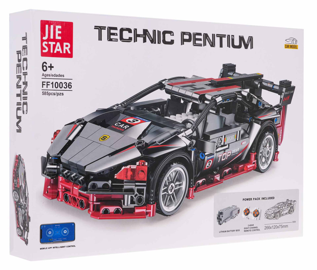 Zestaw 585 klocków konstrukcyjnych do samodzielnej budowy czarnego samochodu sportowego z funkcją zdalnego sterowania. Zabawka przeznaczona dla dzieci od 6-go roku życia. Klocki i elementy autka wykonane zostały z wysokiej jakości tworzywa sztucznego. Auto posiada ruchome elementy, jak otwierane drzwi. Samochód steruje się zdalnie za pomocą pilota RC z zestawu lub dedykowanej aplikacji mobilnej. Pilot działa na niezawodnej częstotliwości 2,4 GHz. W zestawie dołączono instrukcję obrazkową. Układanie klocków konstrukcyjnych rozwija u dzieci zdolności manualne, wyobraźnię przestrzenną i cierpliwość. Autko zasilane jest akumulatorem 7,4V (w zestawie), pilot jest zasilany bateriami 2 x AAA 1,5V (brak w zestawie). Specyfikacja: - zestaw 585 klocków konstrukcyjnych, - zdalne sterowanie we wszystkich kierunkach (przód-tył-prawo-lewo), za pomocą pilota RC lub aplikacji mobilnej, - pilot działa na częstotliwości 2,4 GHz, - ręcznie otwierane drzwi, - wierne odwzorowanie prawdziwego samochodu, - przeznaczony dla dzieci od 6-go roku życia, - możliwość ozdobienia auta naklejkami z zestawu, - instrukcja obrazkowa w zestawie. |