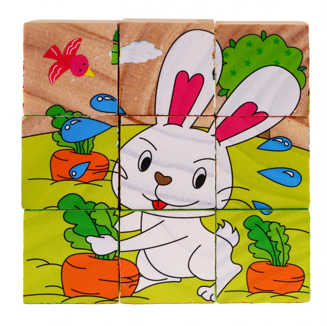 Drewniane klocki z obrazkami, to propozycja dla dzieci już od 18-go miesiąca życia. Klocki są wytrzymałe i bezpieczne dla dzieci. W zestawie znajduje się 9 klocuszków z których można ułożyć 6 obrazków.