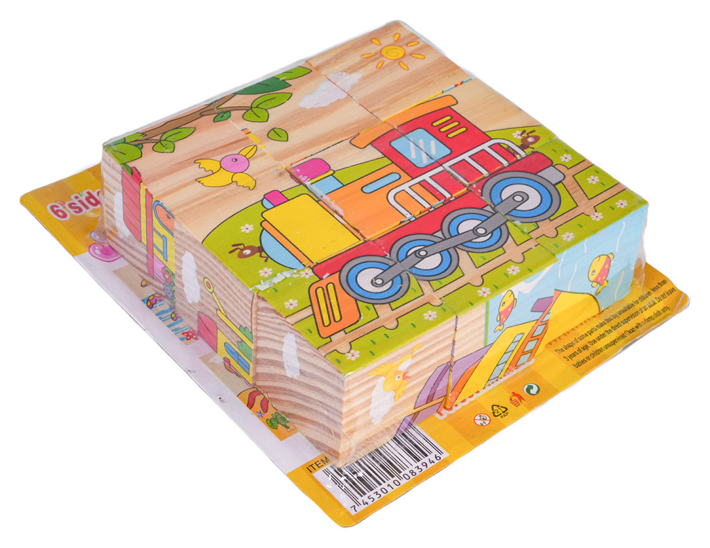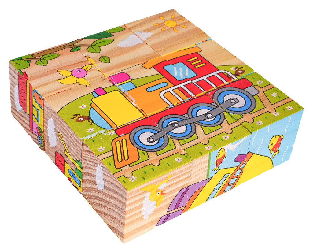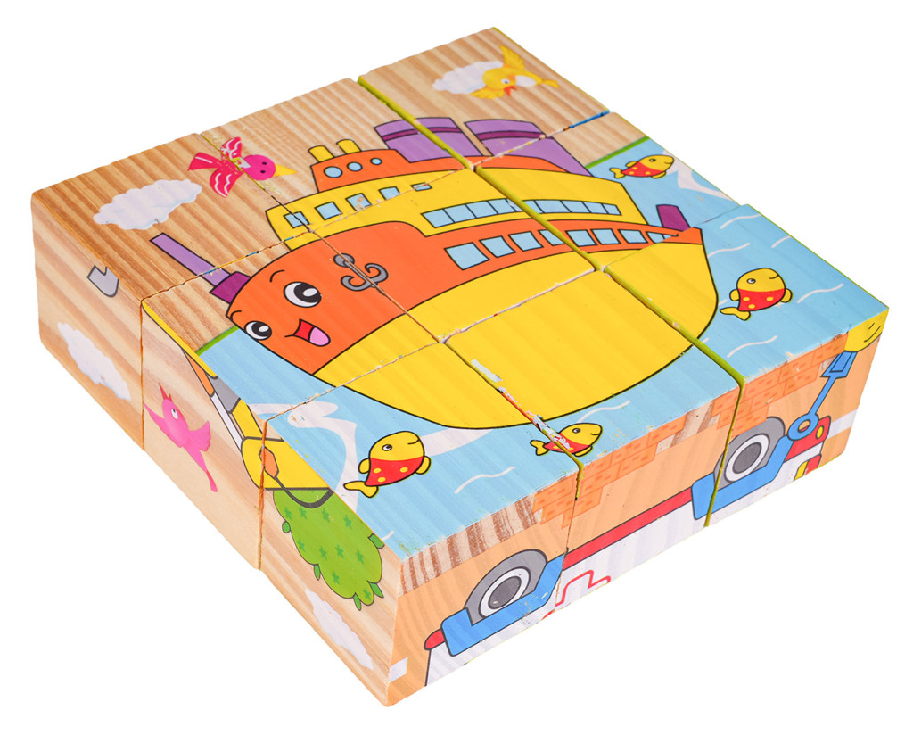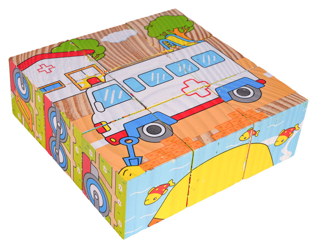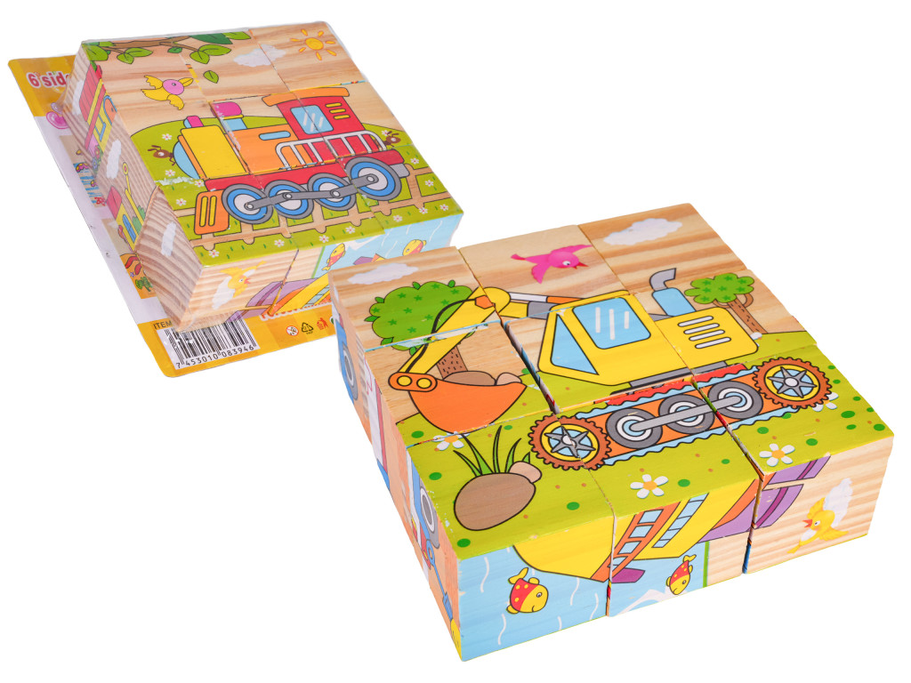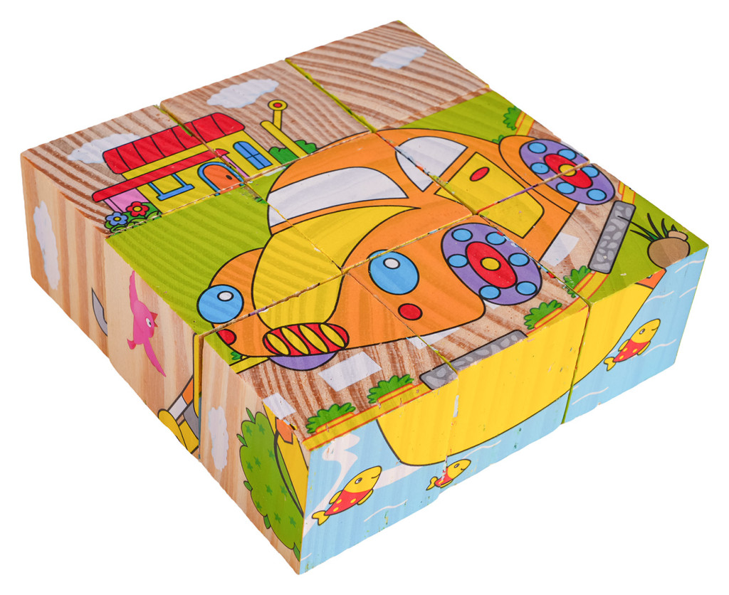 Drewniane klocki z obrazkami, to propozycja dla dzieci już od 18-go miesiąca życia. Klocki są wytrzymałe i bezpieczne dla dzieci. W zestawie znajduje się 9 klocuszków z których można ułożyć 6 obrazków.