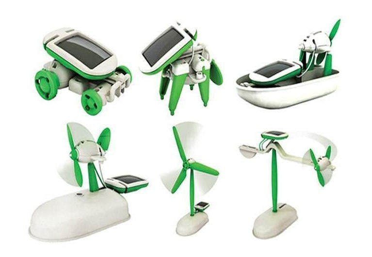 Zestaw 6 robotów solarnych. Proponowany zestaw to oferta dla dzieci powyżej 10 roku życia. Solarny robot 6 w 1 to edukacyjny zestaw do samodzielnego składania robotów zasilanych światłem słonecznym.