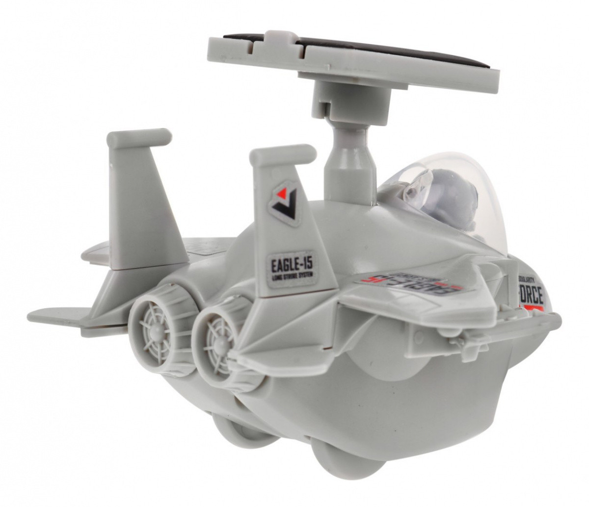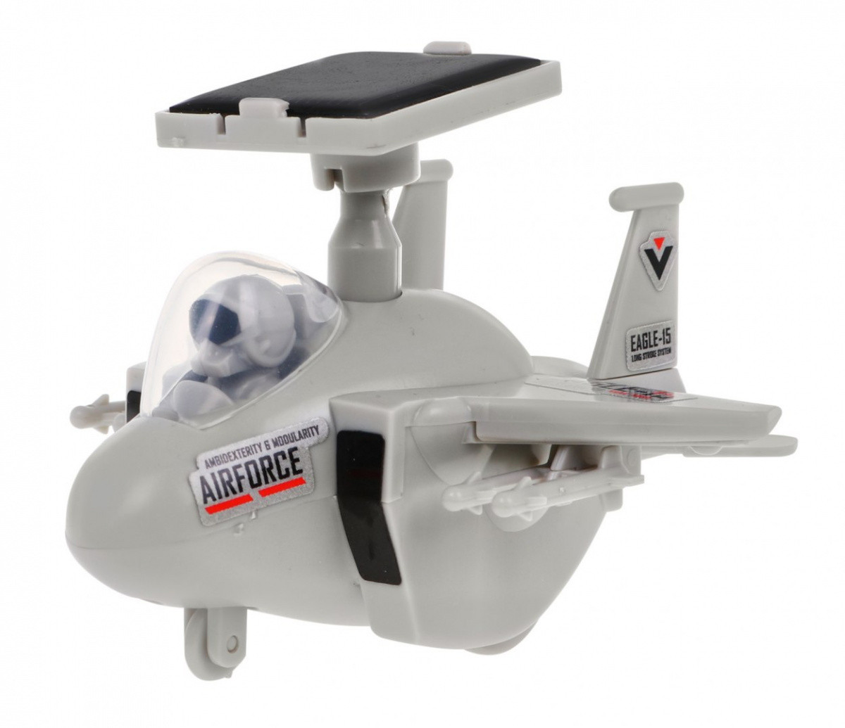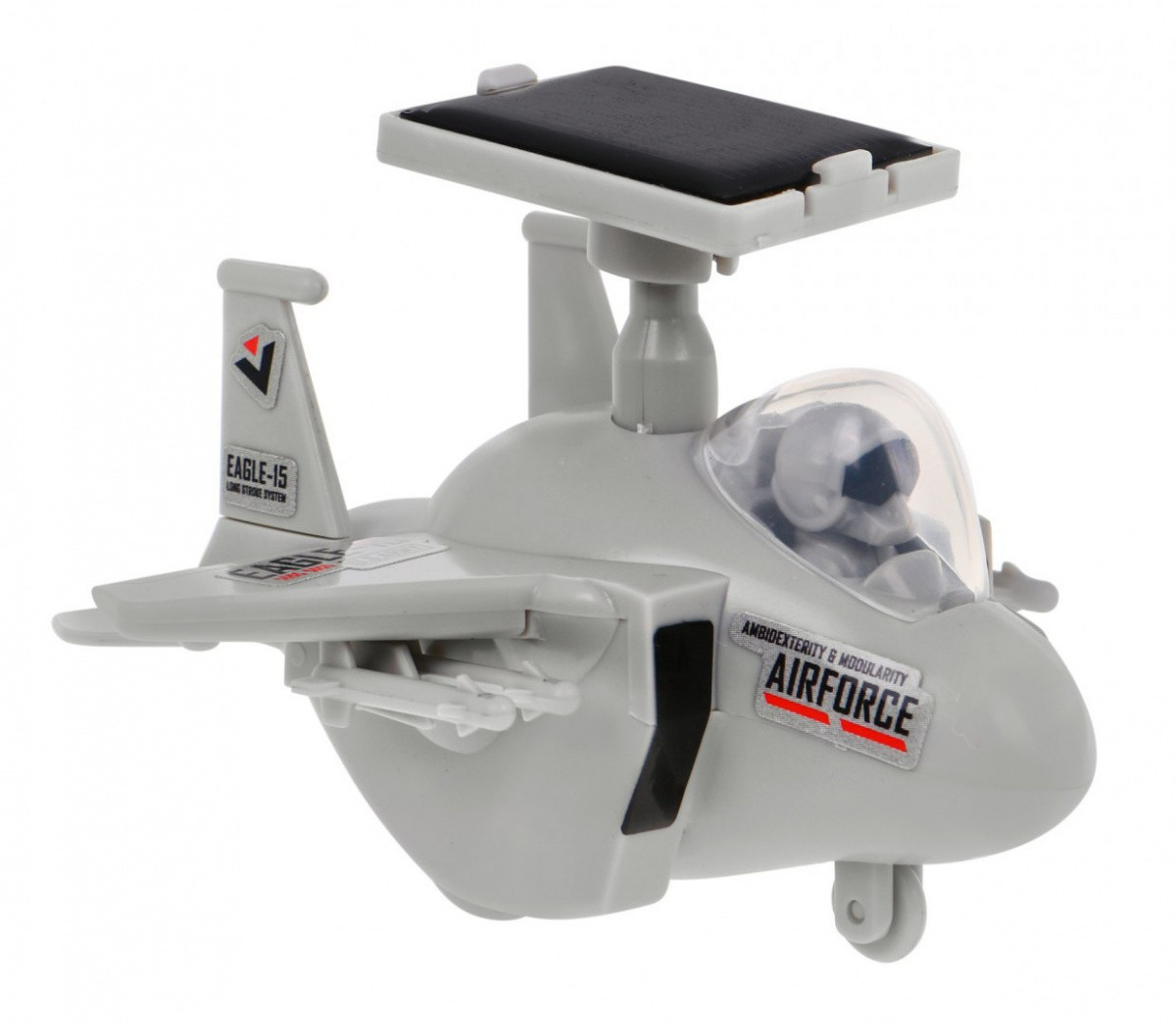 Myśliwiec solarny to edukacyjna zabawka dla dzieci od 8-go roku życia. Zabawka jest do samodzielnego montażu, zasilana światłem słonecznym. Ten robot solarny, to idealna zabawka dla chłopców i dziewczynek. Poprzez zabawę tym modelem dziecko zrozumie zasadę działania baterii słonecznych oraz nauczy się czerpania pożytku z energii słonecznej.
