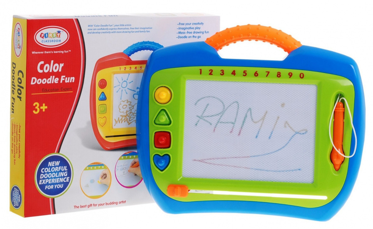 Płaszczyzna do rysowania  ma 4 kolory w podkładzie (żółty, niebieski, czerwony, zielony).