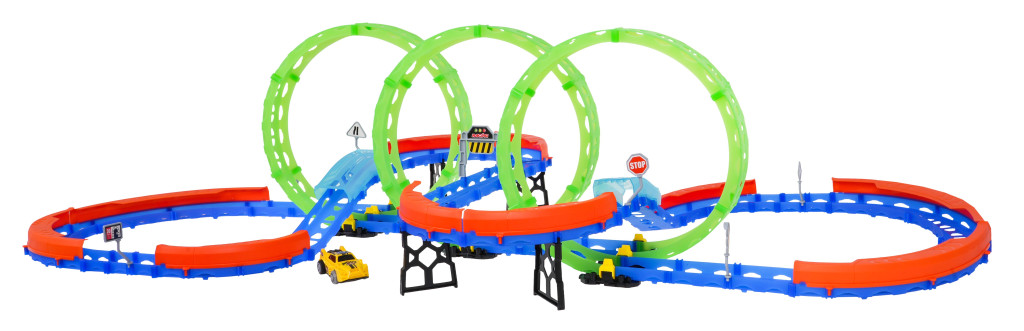 Ekstremalny Tor Wyścigowy dla dzieci 3+ Części konstrukcyjne 74 el. + Autko z LED + Pętle 360