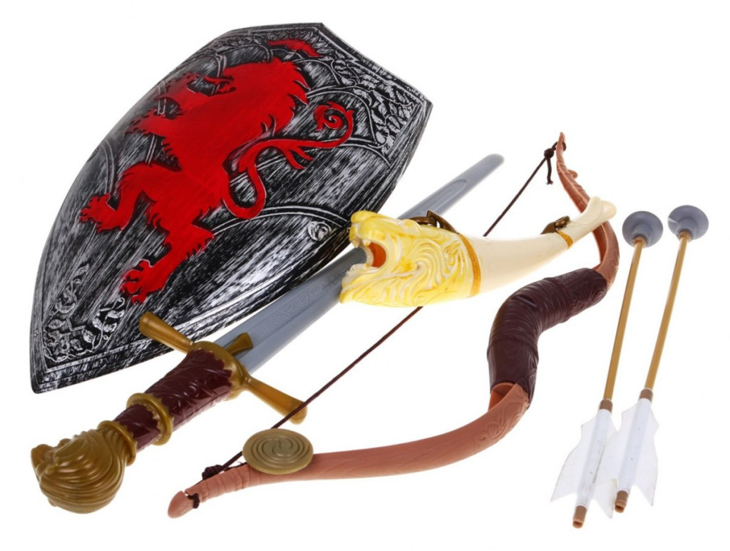 Zestaw Średniowiecznego Wojownika, Łuk, Tarcza, Miecz, Ró