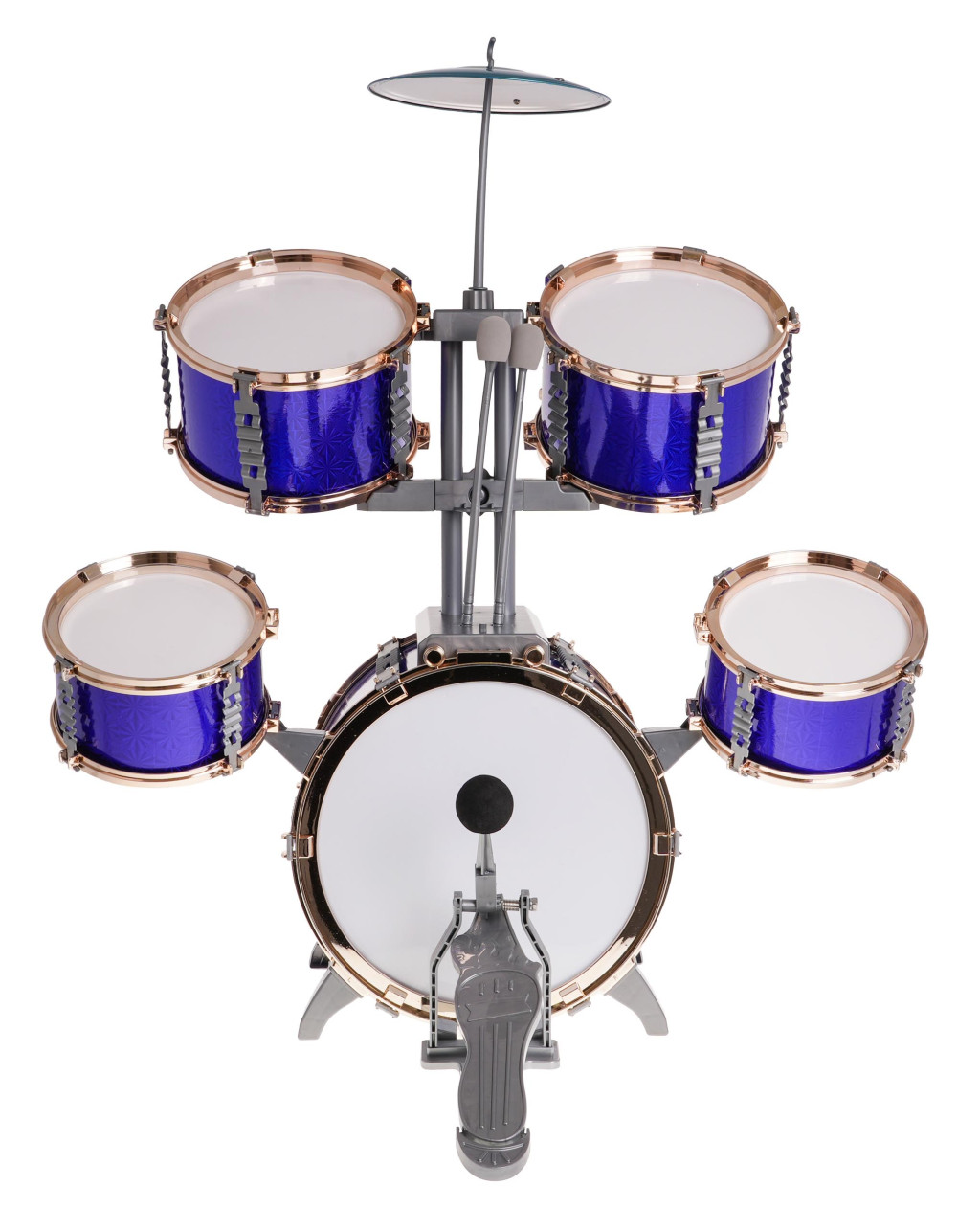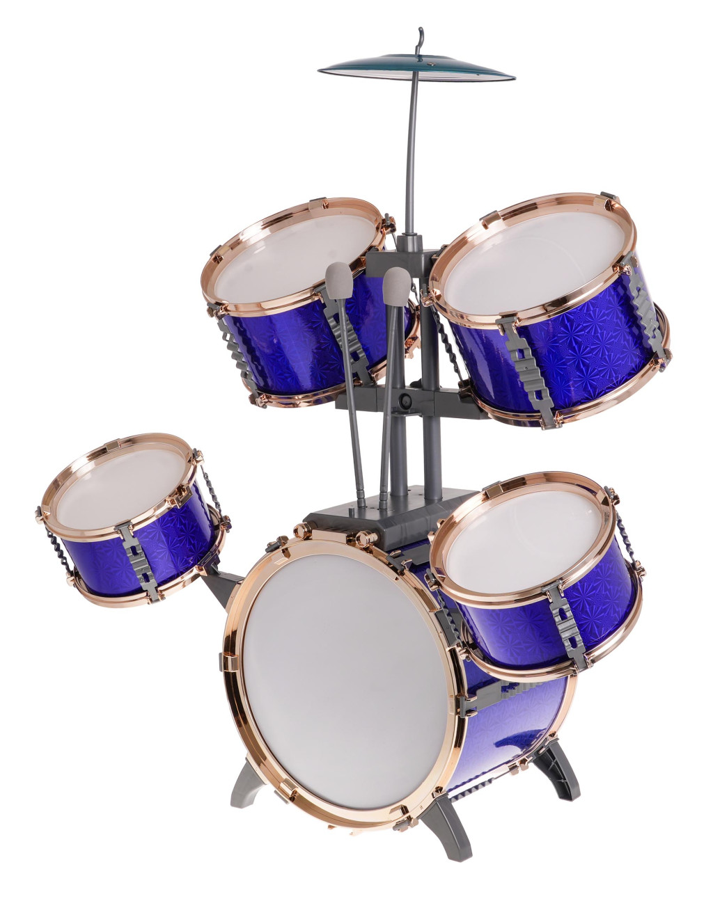 Duża Perkusja 5-bębnowa dla dzieci 3+ Niebieski + Metalowy talerz + 2 Pałki + Krzesełko