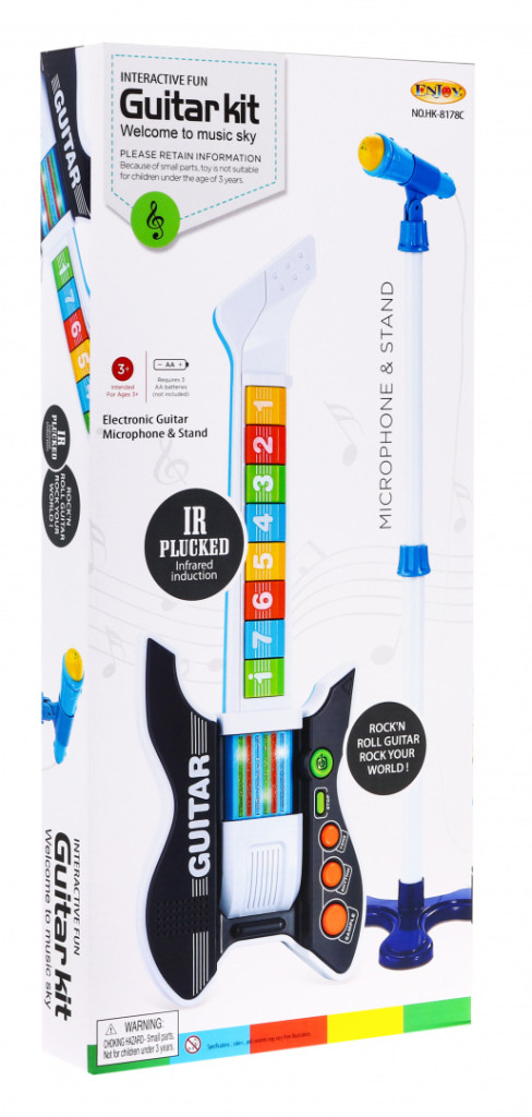 Kolorowa Gitara elektryczna dla dzieci 3+ Mikrofon na statywie + Dźwięki Światła