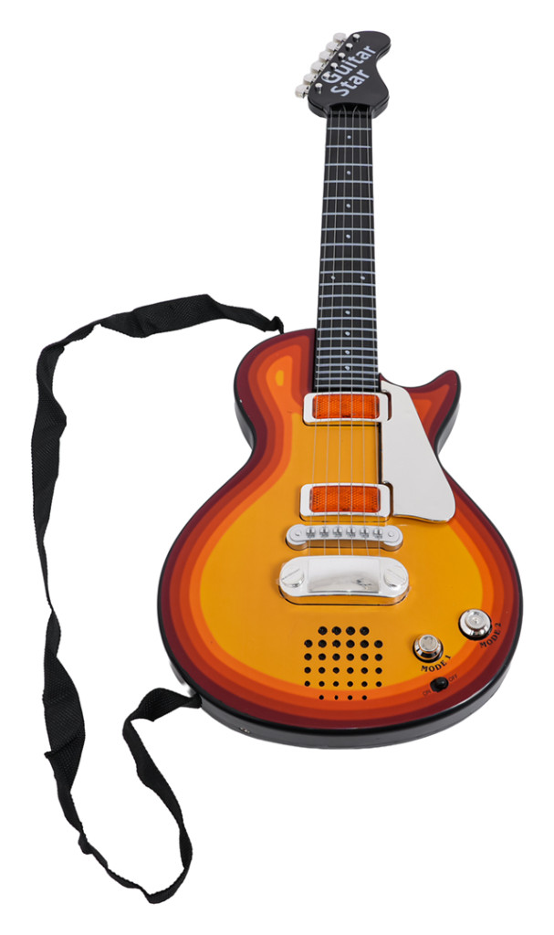 Elektryczna Gitara dla dzieci 3+ czerwone drewno + Słuchawki z mikrofonem + Dźwięki Światła