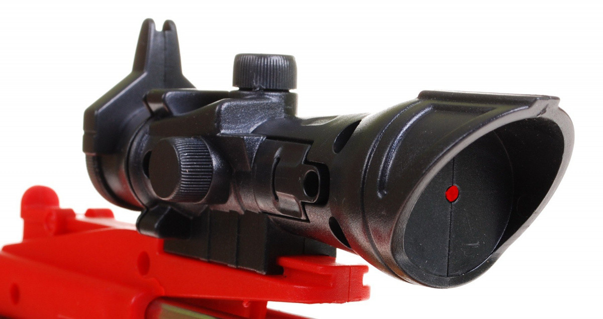 Kusza naciągana jest na gumkę i posiada celownik na podczerwień, który umożliwi celniejsze oddanie strzału.