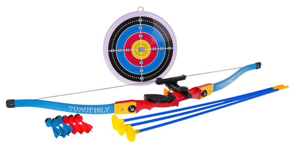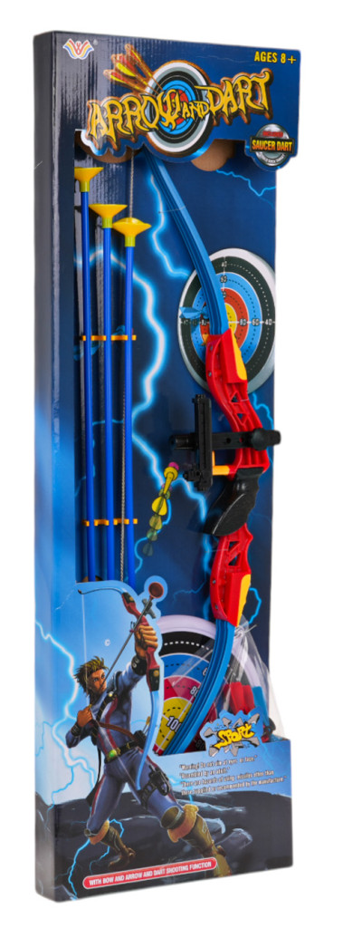 Wymiary | - łuk ok. 22 cm x 85,5 cm x 7,5 cm, - bełty ok. 60,5 cm x 4,5 cm, - rzutki ok. 8 cm x 2 cm, - tarcza z celem ok. 23,5 cm średnicy, - opakowanie ok. 89,5 cm x 29,5 cm x 5,5 cm. |