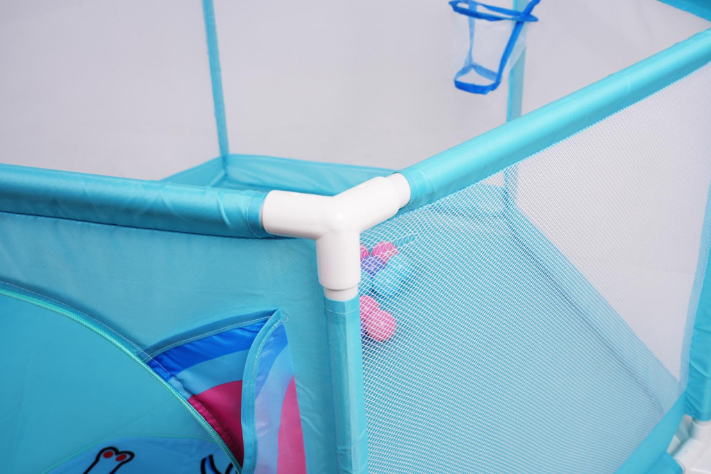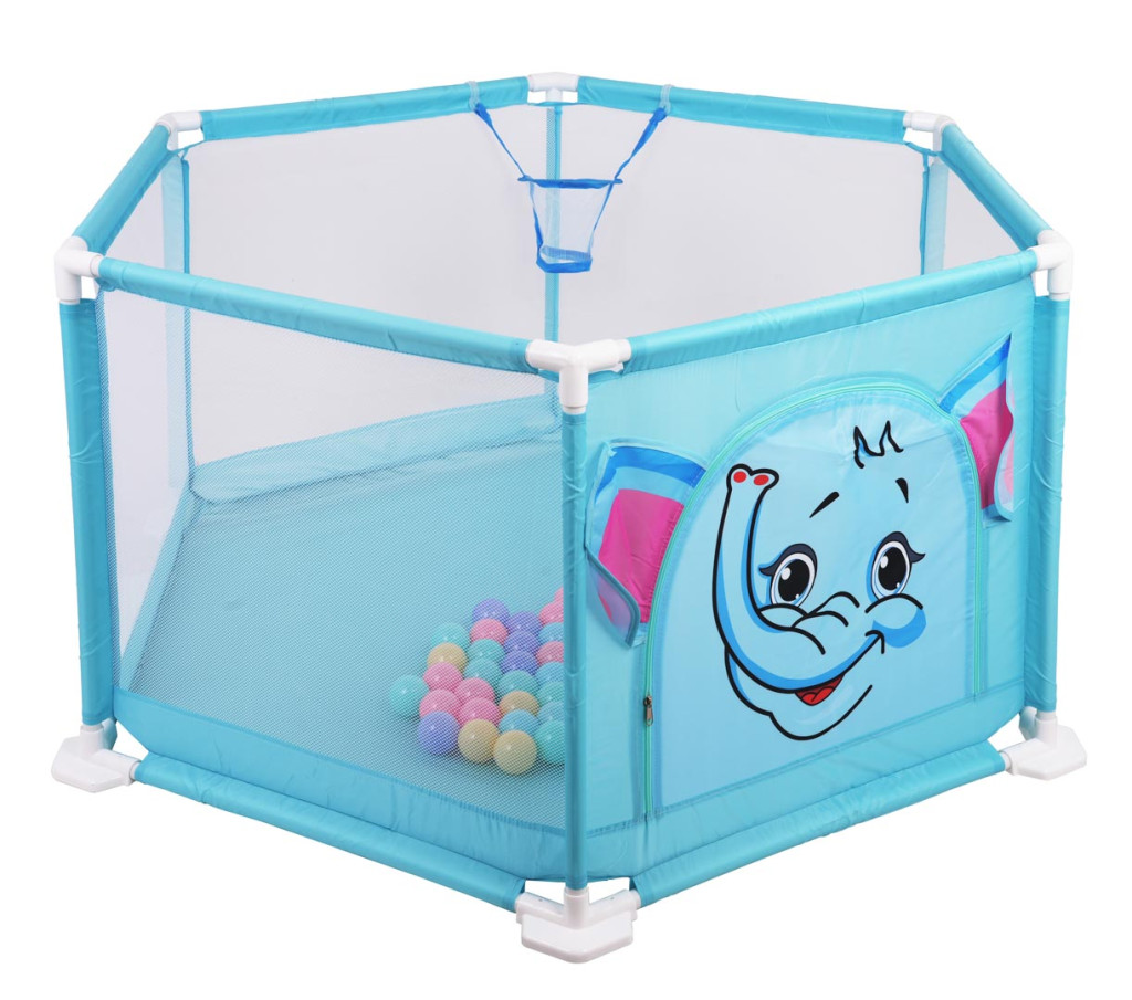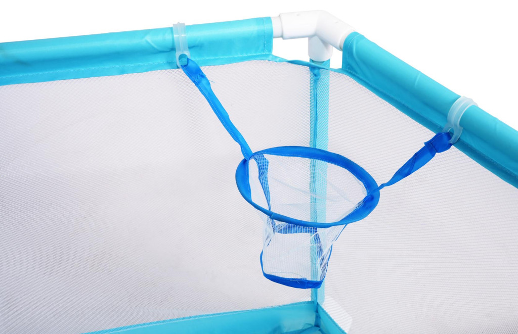 Kojec z koszykówką i piłeczkami w zestawie dla dzieci od 3-go roku życia. Kojec jest lekki, dzięki czemu można go szybko przenieść w wybrane miejsce. Nadaje się do użytku w pomieszczeniu lub na zewnątrz. Materiał, z którego jest wykonany, bardzo łatwo się czyści i dezynfekuje. Kojec posiada 5 ścianek wykonanych z siateczki, dzięki czemu możemy z łatwością obserwować dziecko. Ścianka z wesołym słonikiem posiada zamek błyskawiczny, dzięki czemu malucha można swobodnie wchodzić i wychodzić. Na jednej ze ścianek, wewnątrz umieszczono kosz na piłki, a w zestawie znajduje się 50 piłeczek. Kojec jest w pełni bezpieczny dla malucha i stabilny. Funkcje kojca: - odpowiedni dla dzieci od 3 – go roku życia, - wykonany z materiałów bezpiecznych dla malucha, - łatwo się go czyści i dezynfekuje, - lekki do przenoszenia, - można go używać na zewnątrz jak i w pomieszczeniu, - 5 ścianek wykonanych z siateczki, - ścianka ze słonikiem posiada zamek błyskawiczny, - w zestawie koszykówka i 50 piłeczek. |