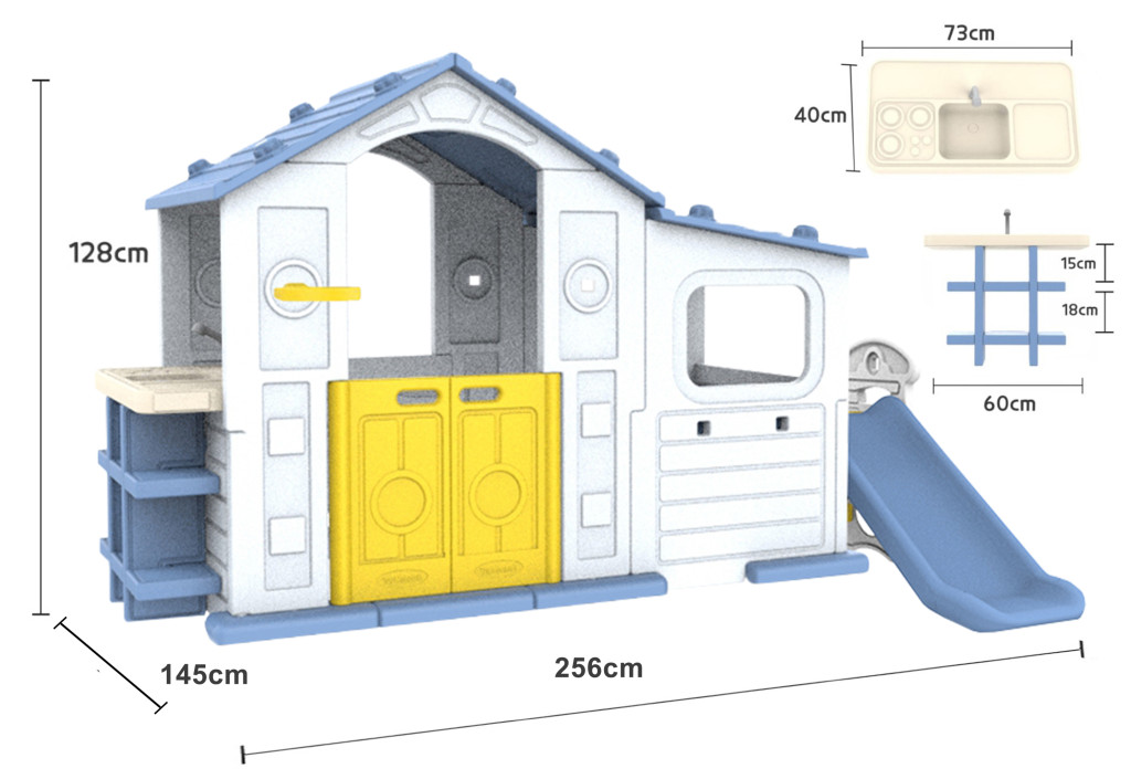 Duży Dom Z Przedsionkiem, Zjeżdżalnią i Zlewem Niebieski Dach