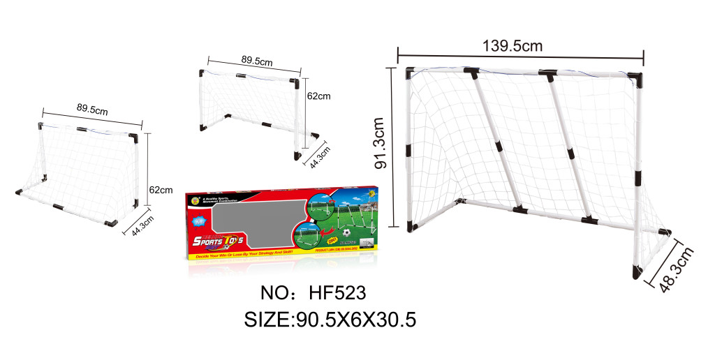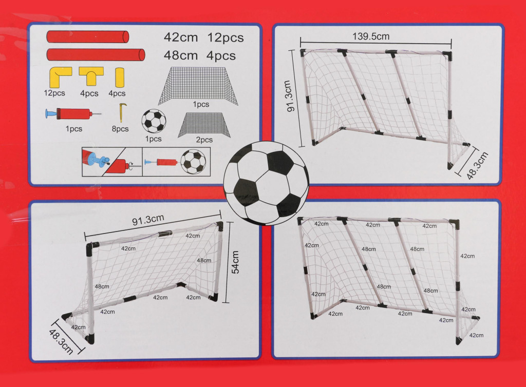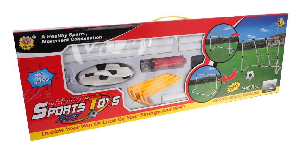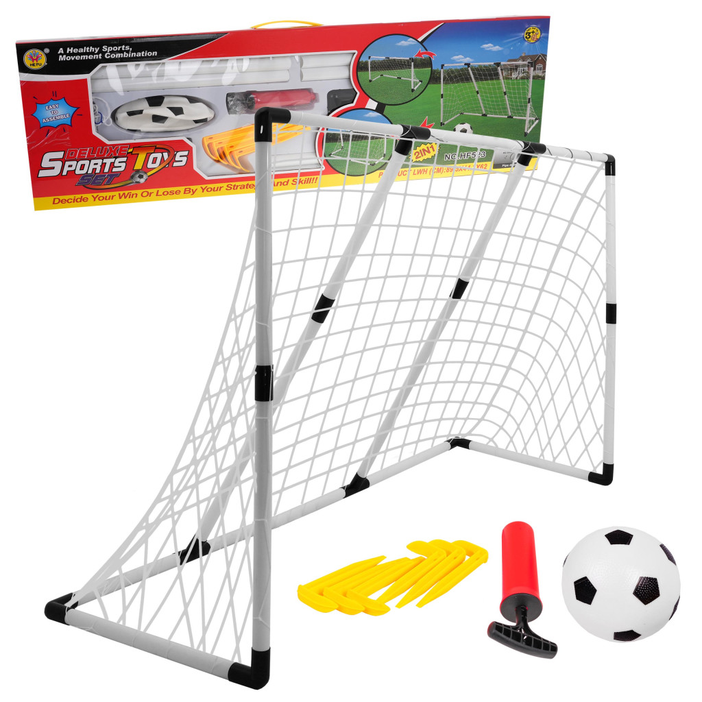 Zestaw bramek 2w1 dla każdego fana piłki nożnej. Możliwość złożenia jednej dużej bramki lub dwóch małych, dzięki dołączonym do zestawu 2 siatkom do małych bramek. Zestaw przeznaczony jest dla dzieci od 3-go roku życia.