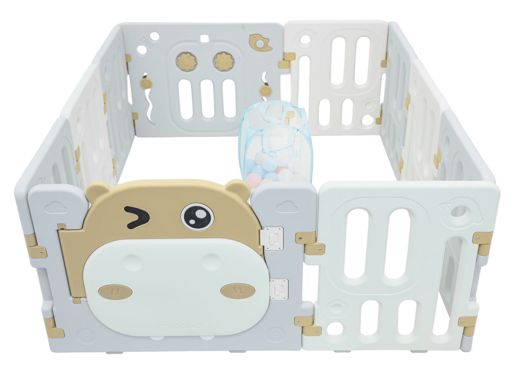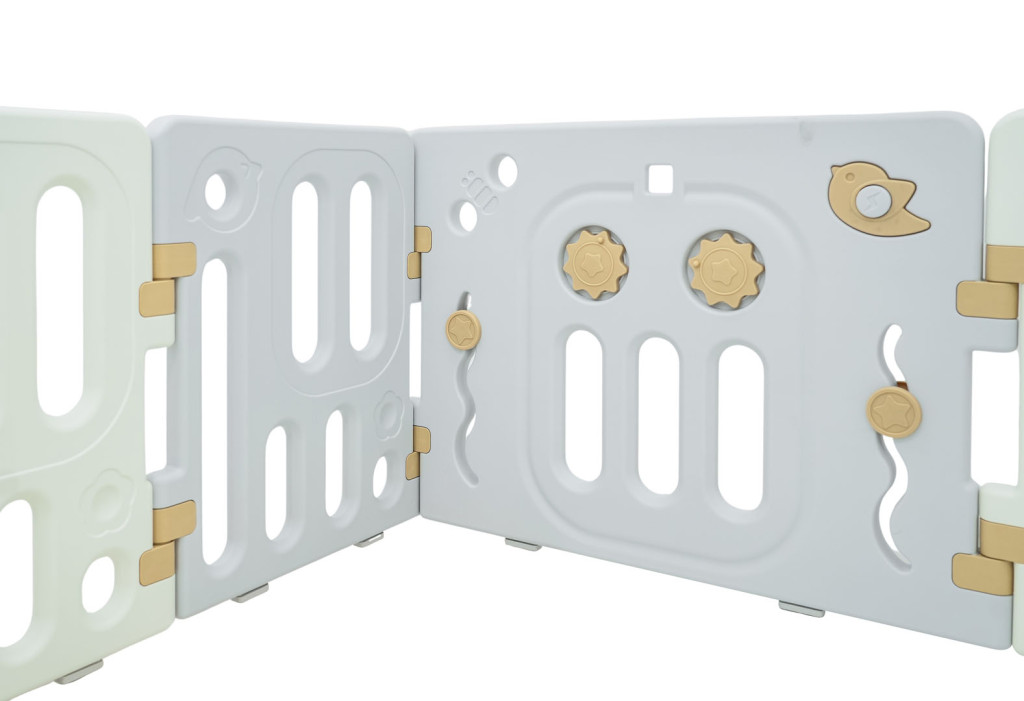 | Duży, praktyczny, składany kojec modułowy dla dziecka od-6 go miesiąca życia. Z kojca możemy ułożyć dowolną konstrukcję, według własnych upodobań, bardzo łatwo się składa i rozkłada, jest stabilny i posiada gładkie krawędzie. Wnętrze kojca wyposażono w manipulacyjne elementy takie jak przesuwane kółeczko, zębatki, piszczałkę czy kierownicę. Zestaw wykonano z trwałych i nietoksycznych materiałów, składa się z 10 paneli. Panel drzwi blokuje się, na zewnątrz uniemożliwiając otwarcie drzwi przez dziecko. Antypoślizgowe nóżki zapobiegają przesuwaniu się kojca. W kojcu twój maluszek będzie mieć wystarczającą ilość miejsca do swobodnego przemieszczania się, a jednocześnie będzie bezpieczny. W zestawie znajduje się również kosz na piłeczki i 40 piłeczek. Funkcje zestawu: - odpowiedni dla dzieci powyżej 6-go miesiąca życia, - możliwość zbudowania dowolnej wielkości kojca według własnych upodobań, - elementy manipulacyjne wewnątrz kojca: przesuwane kółeczka, zębatki, piszczałka w ptaszku i kierownicy, obrotowa kierownica. - wykonany z trwałych i nietoksycznych materiałów, - blokada drzwi na zewnątrz, - antypoślizgowe nóżki, - łatwo się składa i rozkłada, - kosz na piłeczki i piłeczki w zestawie. |