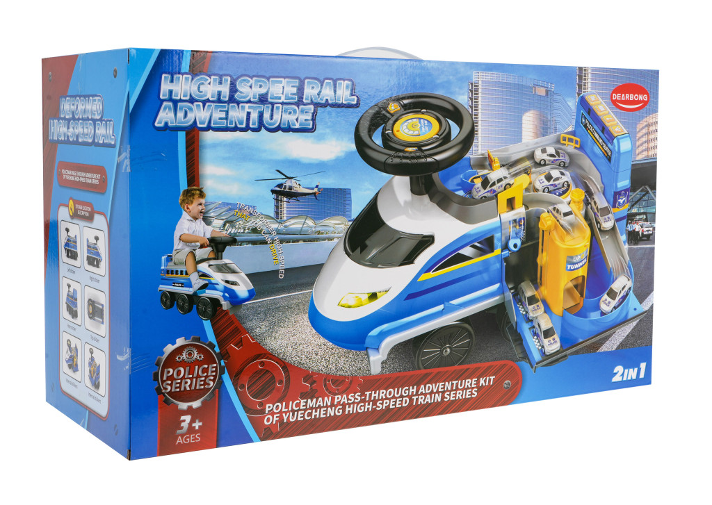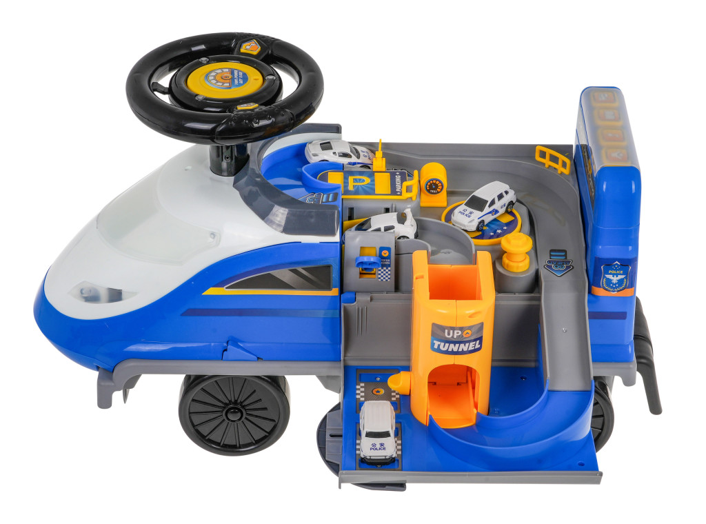 | | - jeździk lokomotywa, - części konstrukcyjne parkingu, - 4 autka policyjne, - zestaw montażowy (śrubokręt, śrubki), - instrukcja. |