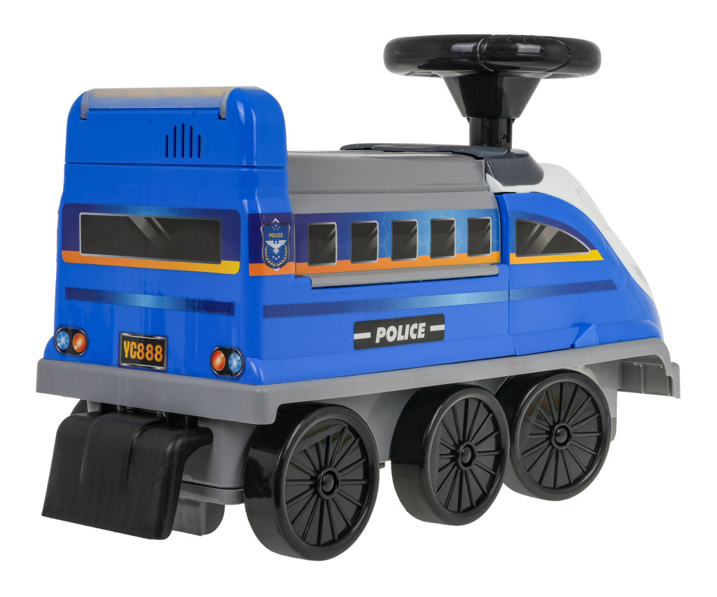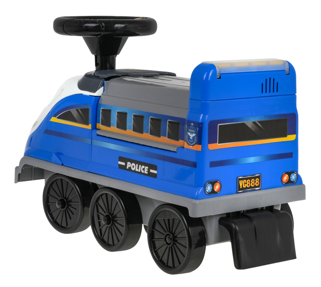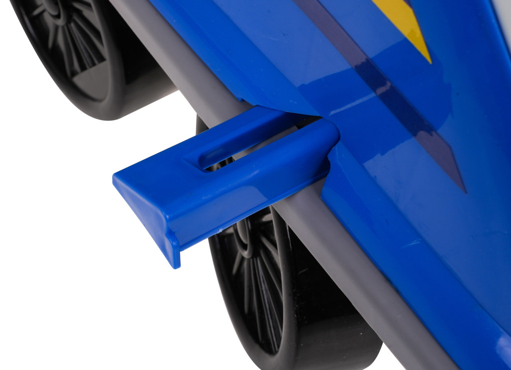 | | Interaktywny jeździk - lokomotywa z parkingiem policyjnym i efektami dźwiękowymi oraz świetlnymi to propozycja dla dzieci od 3-go roku życia. Zabawka wykonana została z wysokiej jakości, wytrzymałego i nietoksycznego tworzywa sztucznego. Lokomotywa posiada 6 kół w tym dwa przednie skrętne. Pod siedzeniem znajduje się rozkładany parking policyjny ze zjeżdżalniami, ruchomą windą, otwieranym szlabanem, podnośnikiem oraz obrotowym kółkiem. Wszystkie ruchome elementy sterowane są ręcznie. Pod parkingiem jest dodatkowo schowek na skarby dziecka. Również z przodu lokomotywy mamy otwieraną szybkę przednią z wolną przestrzenią na różne drobnostki. Boki lokomotywy wyposażono w wysuwane podnóżki dla dziecka. Zabawka zasilana jest bateriami typu 2 x 1,5V AA – kierownica oraz bateriami typu 2 x 1,5V AA – panel dźwiękowy, w zestawie brak baterii. W kierownicy umiejscowiono przycisk uruchamiający kolorowe migające światełka. Z tyłu lokomotywy jest natomiast panel dźwiękowy z przyciskami po naciśnięciu, na które słychać melodie, opowiadania oraz odgłosy zwierząt. Lektor posługuje się językiem angielskim. Lokomotywa ma świecące światełka przednie. Funkcje: - przycisk świetlny w kierownicy – migające różnokolorowe światełka, - panel muzyczny z tyłu lokomotywy z muzyką, opowiadaniami i odgłosami zwierząt, - świecące światła przednie, - stabilna konstrukcja, - 6 kółek, - ruchoma kierownica, - ruchome koła przednie, - rozkładany parking pod siedzeniem, - ruchome elementy parkingu, sterowane ręcznie – winda, szlaban, podnośnik, obrotowe kółko, - schowek na drobiazgi pod parkingiem i na przodzie lokomotywy pod szybką imitującą przednią szybę lokomotywy, - wysuwane podnóżki po bokach jeździka. |