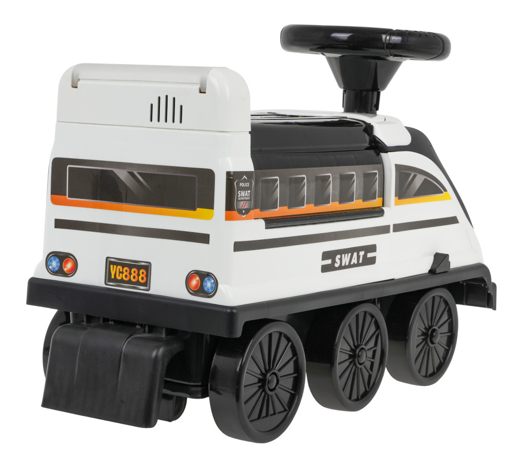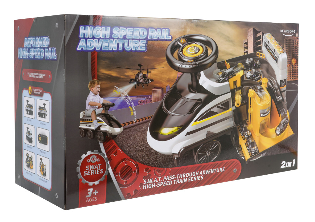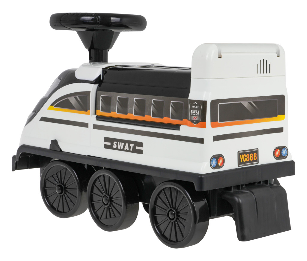 | | Interaktywny jeździk - lokomotywa z parkingiem policyjnym i efektami dźwiękowymi oraz świetlnymi to propozycja dla dzieci od 3-go roku życia. Zabawka wykonana została z wysokiej jakości, wytrzymałego i nietoksycznego tworzywa sztucznego. Lokomotywa posiada 6 kół w tym dwa przednie skrętne. Pod siedzeniem znajduje się rozkładany parking policyjny ze zjeżdżalniami, ruchomą windą, otwieranym szlabanem, podnośnikiem oraz obrotowym kółkiem. Wszystkie ruchome elementy sterowane są ręcznie. Pod parkingiem jest dodatkowo schowek na skarby dziecka. Również z przodu lokomotywy mamy otwieraną szybkę przednia z wolną przestrzenią na różne drobnostki. Boki lokomotywy wyposażono w wysuwane podnóżki dla dziecka. Zabawka zasilana jest bateriami typu 2 x 1,5V AA – kierownica oraz bateriami typu 2 x 1,5V AA – panel dźwiękowy, w zestawie brak baterii. W kierownicy umiejscowiono przycisk uruchamiający kolorowe migające światełka. Z tyłu lokomotywy jest natomiast panel dźwiękowy z przyciskami po naciśnięciu na które słychać melodie, opowiadania oraz odgłosy zwierząt. Lektor posługuje się językiem angielskim. Lokomotywa ma świecące światełka przednie. Funkcje: - przycisk świetlny w kierownicy – migające różnokolorowe światełka, - panel muzyczny z tyłu lokomotywy z muzyką, opowiadaniami i odgłosami zwierząt, - świecące światła przednie, - stabilna konstrukcja, - 6 kółek, - ruchoma kierownica, - ruchome koła przednie, - rozkładany parking pod siedzeniem, - ruchome elementy parkingu, sterowane ręcznie – winda, szlaban, podnośnik, obrotowe kółko, - schowek na drobiazgi pod parkingiem i na przodzie lokomotywy pod szybką imitującą przednią szybę lokomotywy, - wysuwane podnóżki po bokach jeździka. |