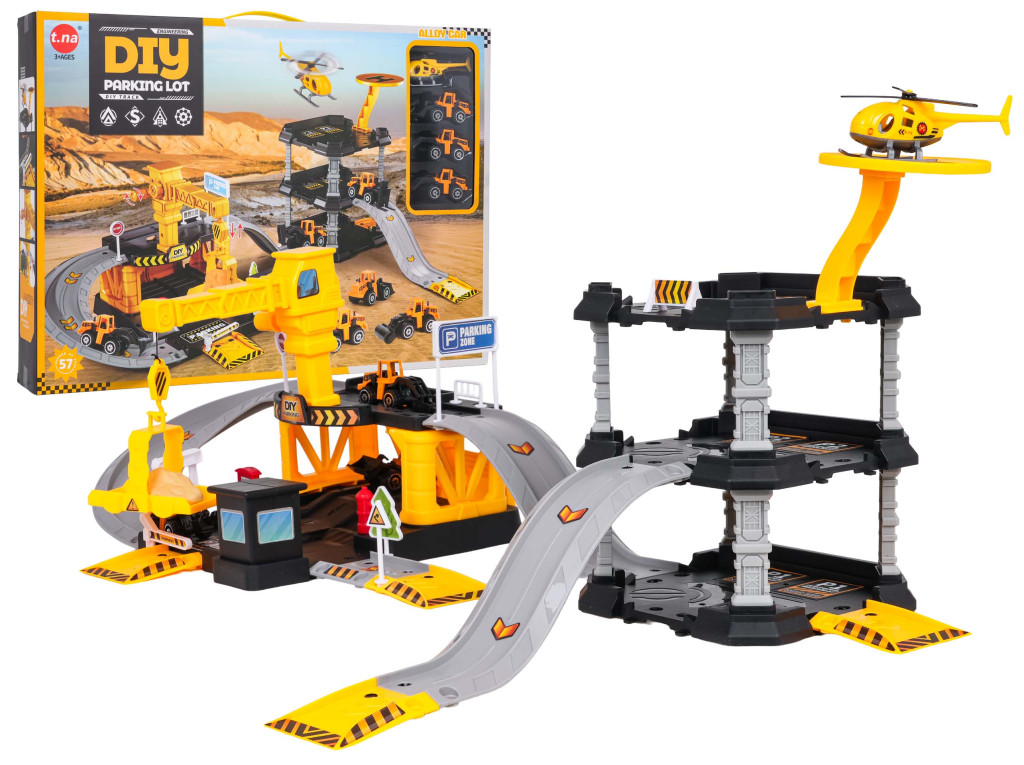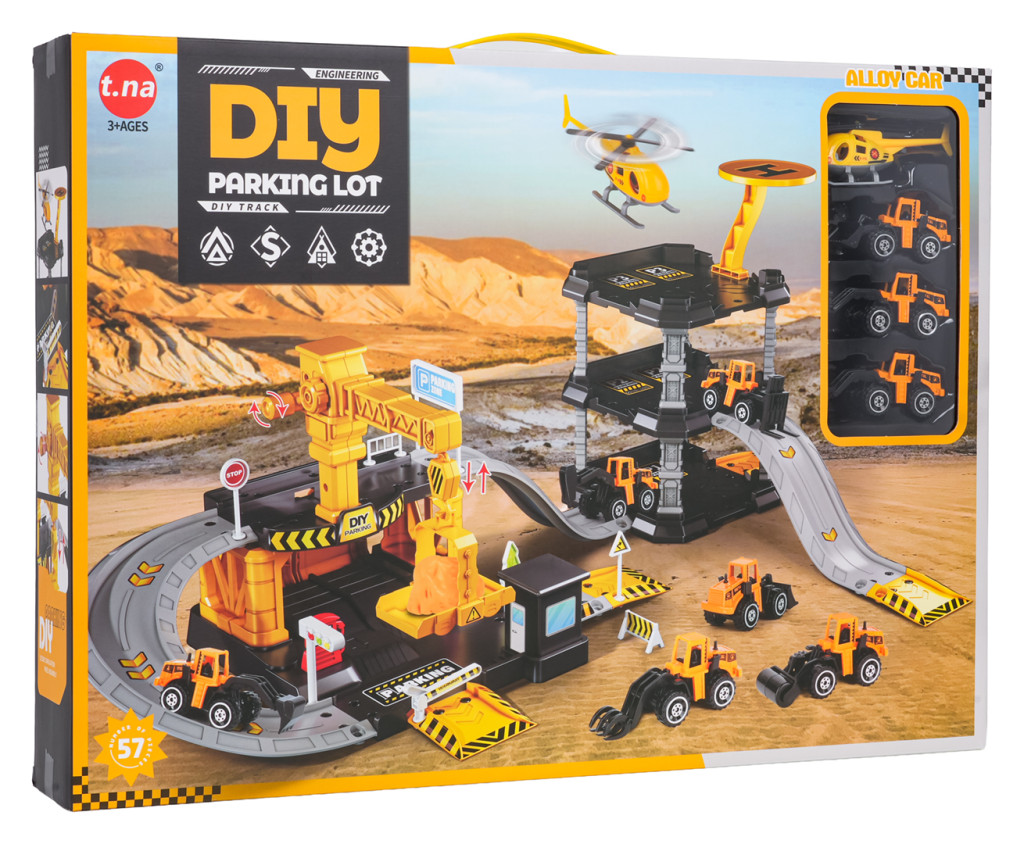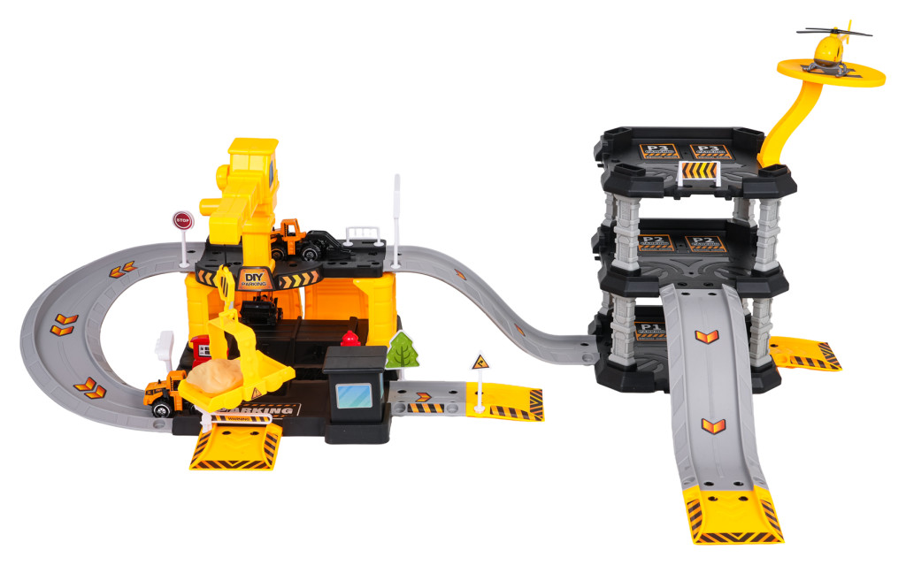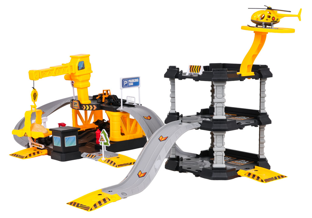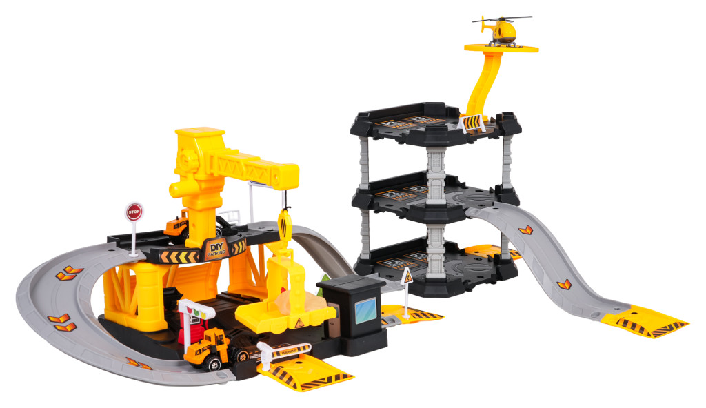 Zestaw parking i plac budowy z autkami budowlanymi dla dzieci od trzeciego roku życia. Plac budowy wyposażono w dźwig z opuszczanym hakiem oraz zjeżdżalnię dla pojazdów budowlanych. Z placu budowy autka mogą przejechać na trzypoziomowy parking ze zjeżdżalnią. Na górze parkingu jest też lotnisko. Zestaw wyposażono w 3 pojazdy budowlane: auto z młotem, ładowarkę i koparkę, a także śmigłowiec. Idealny zestaw do kreatywnej zabawy. Poszczególne elementy bardzo łatwo się ze sobą łączą i tworzą stabilną konstrukcję. Funkcje: - dla dzieci od trzeciego roku życia, - wykonany z najlepszej jakości tworzywa sztucznego, - parking posiada: plac budowy, zjeżdżalnie, dźwig, miejsca parkingowe, lotnisko, - dźwig z ruchomym hakiem (manualnie na korbkę), - posiada wszystko, co niezbędne do zabawy w plac budowy, - pojazdy budowlane posiadają ruchome elementy i metalową karoserię, - idealny zestaw prezentowy. |