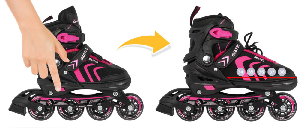 Zestaw 4w1 Rolki Wrotki Łyżwy dla dzieci Rozmiar 34-38 Różowy
