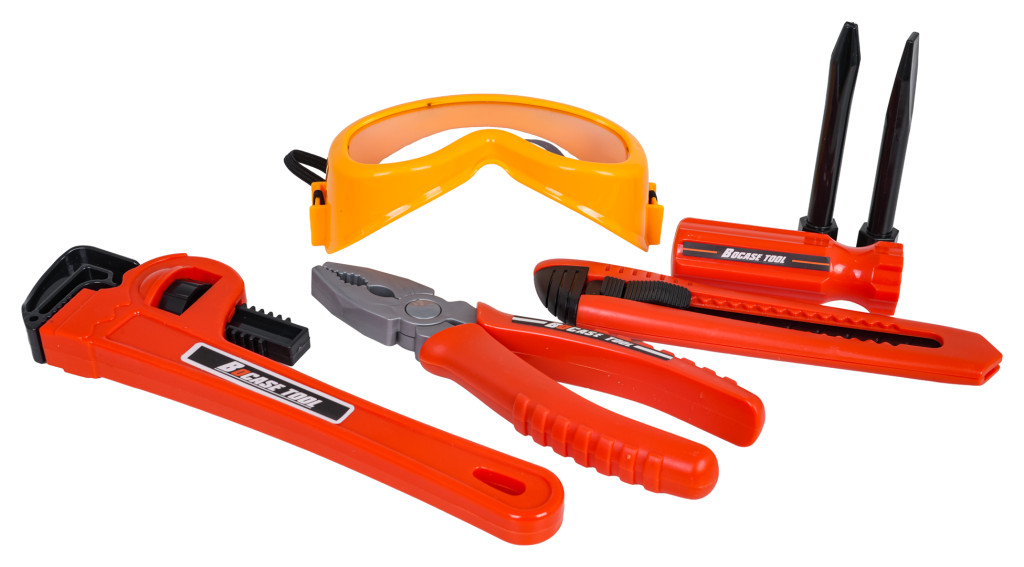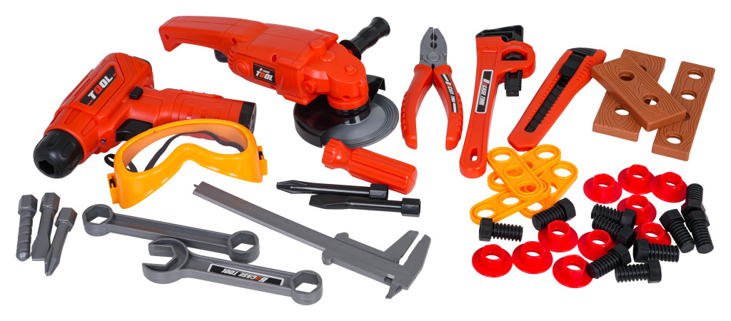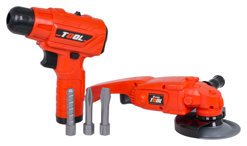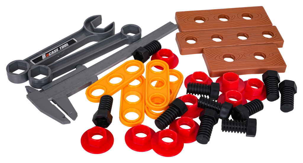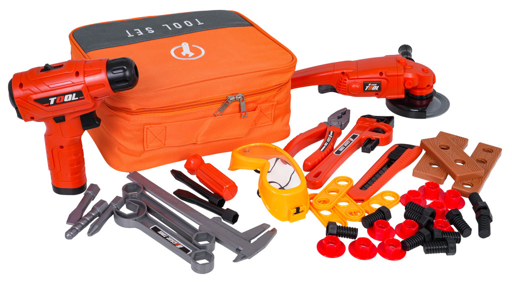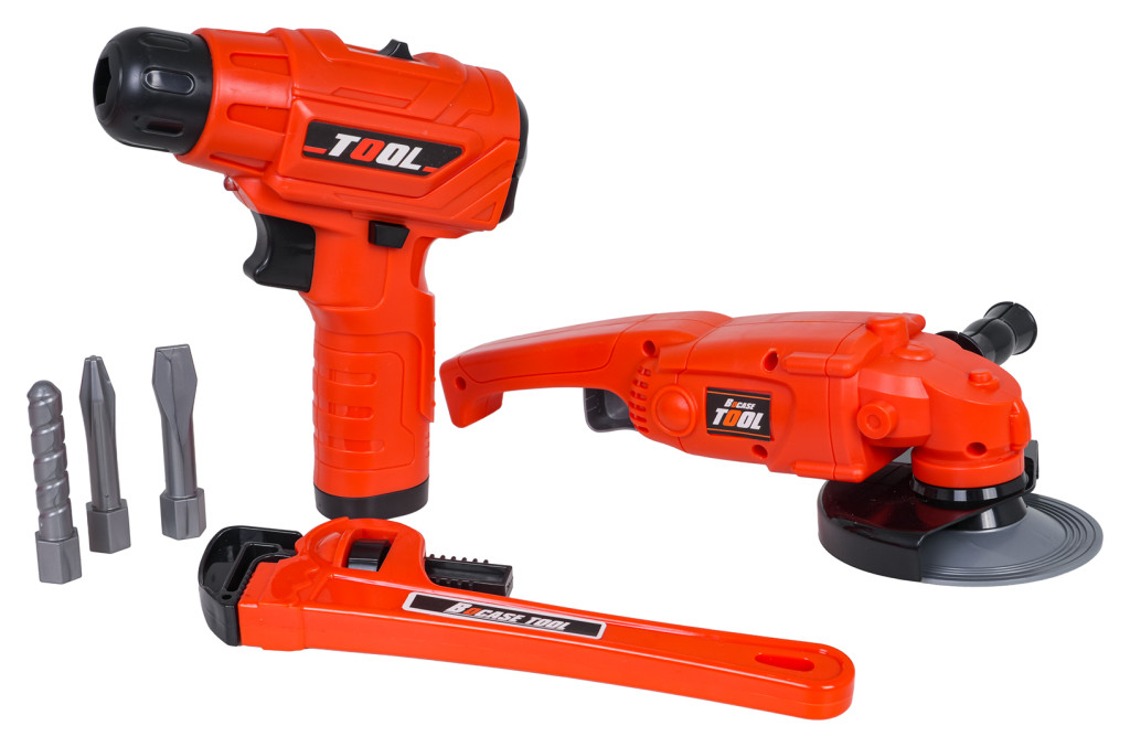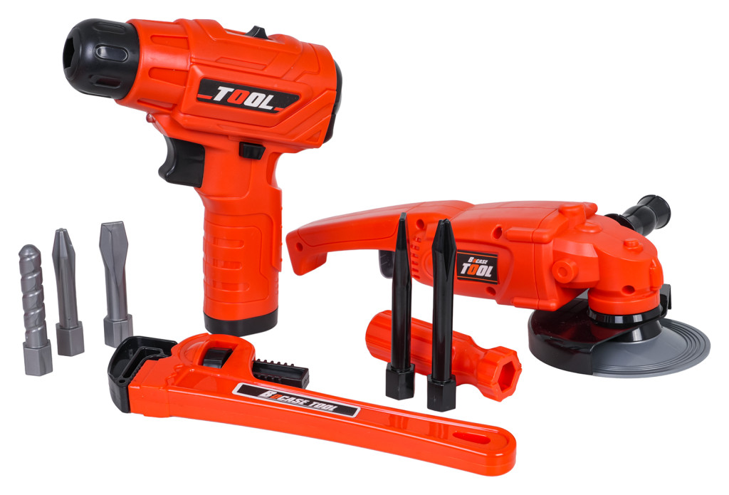 | Bogato wyposażony zestaw narzędzi z torbą dla dzieci od trzeciego roku życia. Zestaw wykonano z najlepszej jakości tworzywa sztucznego, z dbałością o szczegóły. Zabawkowe narzędzia są w pełni bezpieczne dla dzieci. Zestaw składa się z 42 elementów: torby na narzędzia, szlifierki, wiertarko-wkrętarki, klucza nastawnego, kluczy płaskich i oczkowych, nożyka, kombinerek, suwmiarki, okularów ochronnych oraz śrubek, elementów do wkręcania, czy wymiennych bitów. Wiertarko-wkrętarka zasilana jest bateriami typu 2 x AA 1,5V (baterii brak w zestawie). Funkcje: - dla dzieci od trzeciego roku życia, - wykonany z najlepszej jakości materiałów, - dbałość o szczegóły, - wygodna torba mieszcząca wszystkie narzędzia, - szlifierka z obracającą się tarczą (manualnie), - wiertarko-wkrętarka działająca na baterie z odgłosami pracy maszyny, wkręcająca i wykręcająca oraz wyposażona w efekty świetlne w postaci diody na przodzie. |